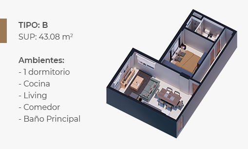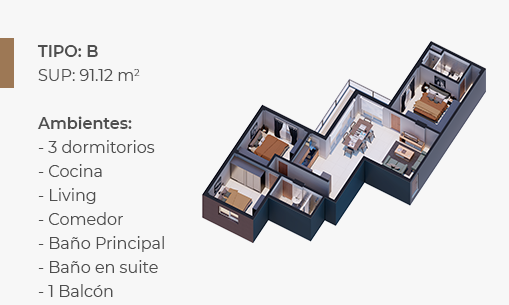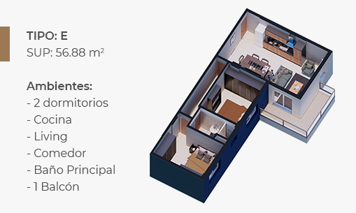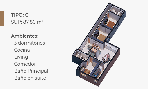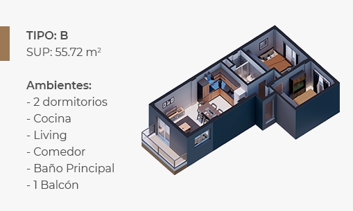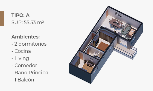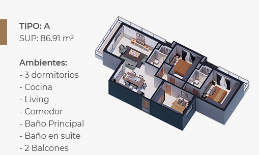Los departamentos de Luana Victoria seducen por su confort y calidad de materiales, los pisos son de porcelanato, aberturas con doble vidrio hermético, aire acondicionado en habitaciones y sala. Amoblamiento de cocina completo, mesada de acero inoxidable, bajo mesa, alacena, extractor, cocina eléctrica y termo tanque, placard completo en habitaciones.