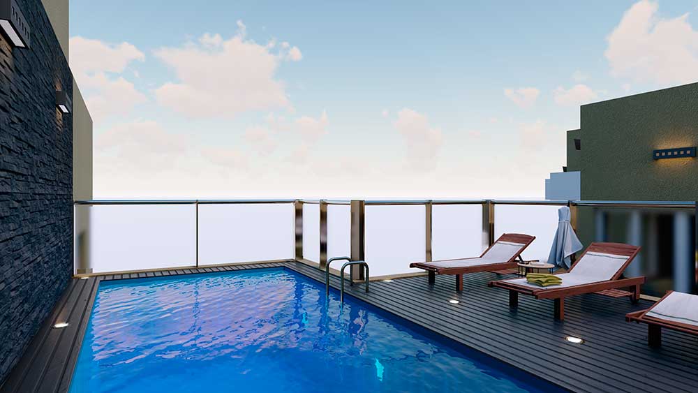 En el último piso de Luana Victoria se ubica un exclusivo paraíso, desde la terraza, piscina y solarium disfrutaras de increíbles vistas, y también de un amplio y acogedor salón de usos múltiples climatizado y con asador.