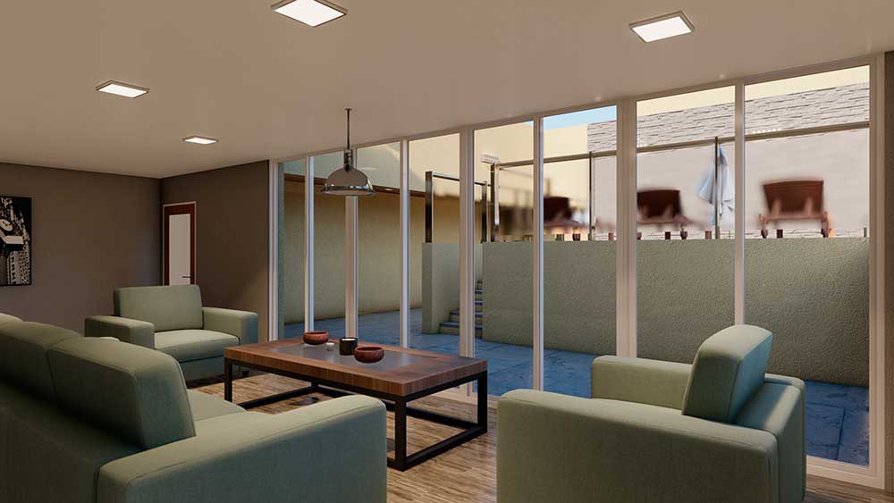 En el subsuelo y en las dos primeras plantas se encuentra la zona de cocheras cubierta y semicubierta, entre otros equipamientos.